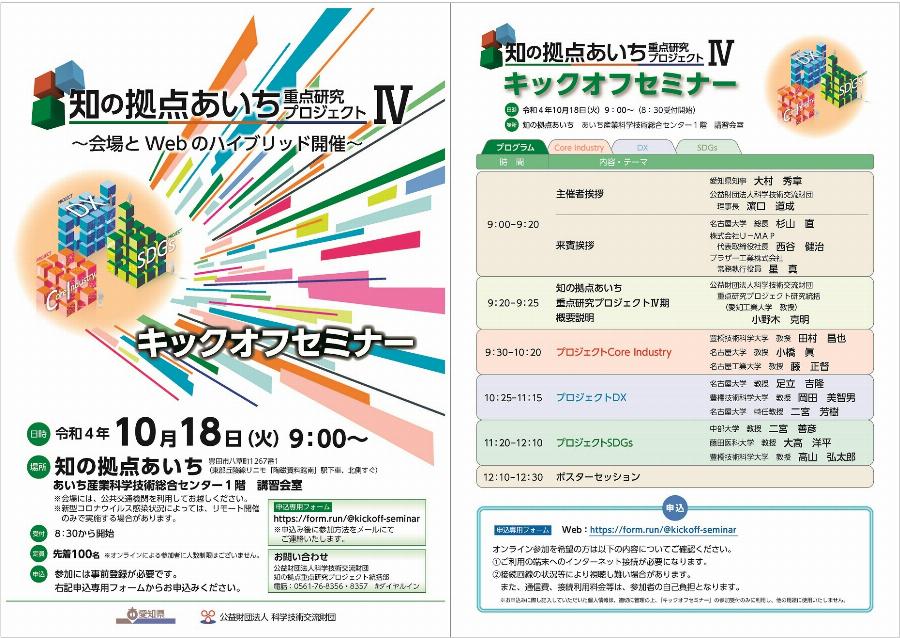 【終了】知の拠点あいち 重点研究プロジェクト(Ⅳ期)キックオフセミナー