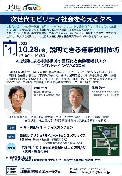 【終了】次世代モビリティ社会を考える夕べ 第1夜「説明できる運転知能技術」