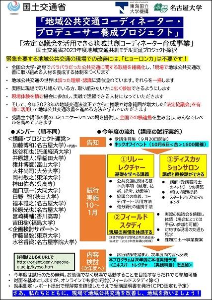 【終了】「地域公共交通コーディネーター・プロデューサー養成プロジェクト」キックオフイベント(主催:名古屋大学大学院環境学研究科附属持続的共発展教育研究センター)