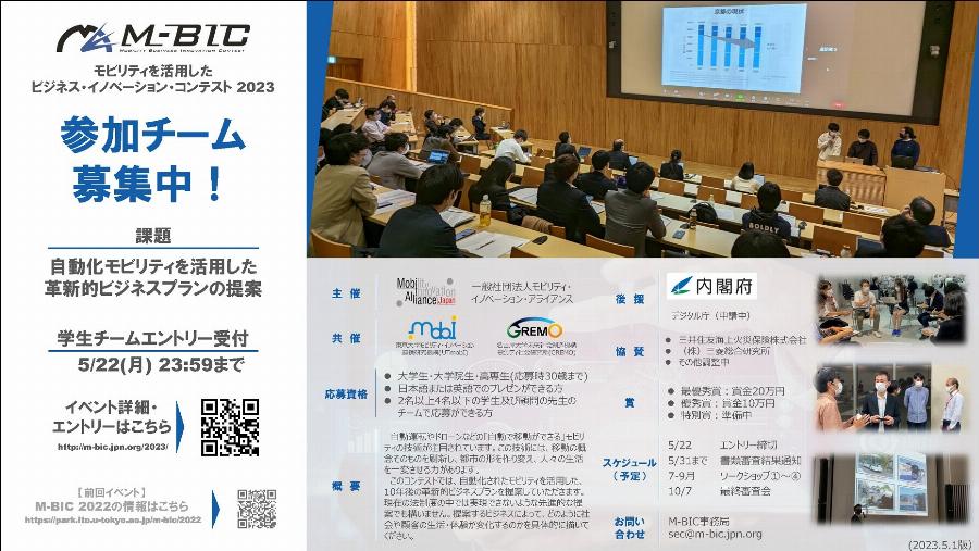 【終了】M-BIC 2023:モビリティを活用したビジネス・イノベーション・コンテスト 2023