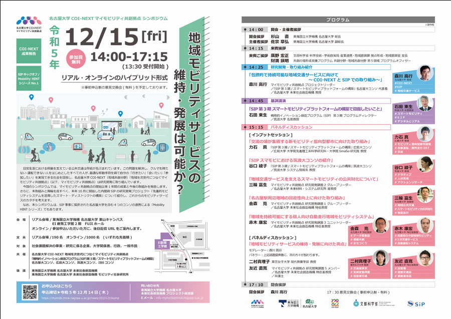 【終了】名古屋大学COI-NEXT マイモビリティ共創拠点シンポジウム「地域モビリティサービスの維持・発展は可能か?」