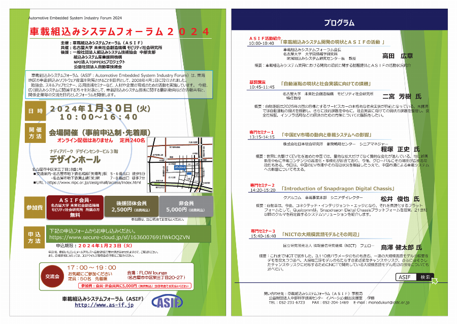 | 主 催 | 車載組込みシステムフォーラム(ASIF) |