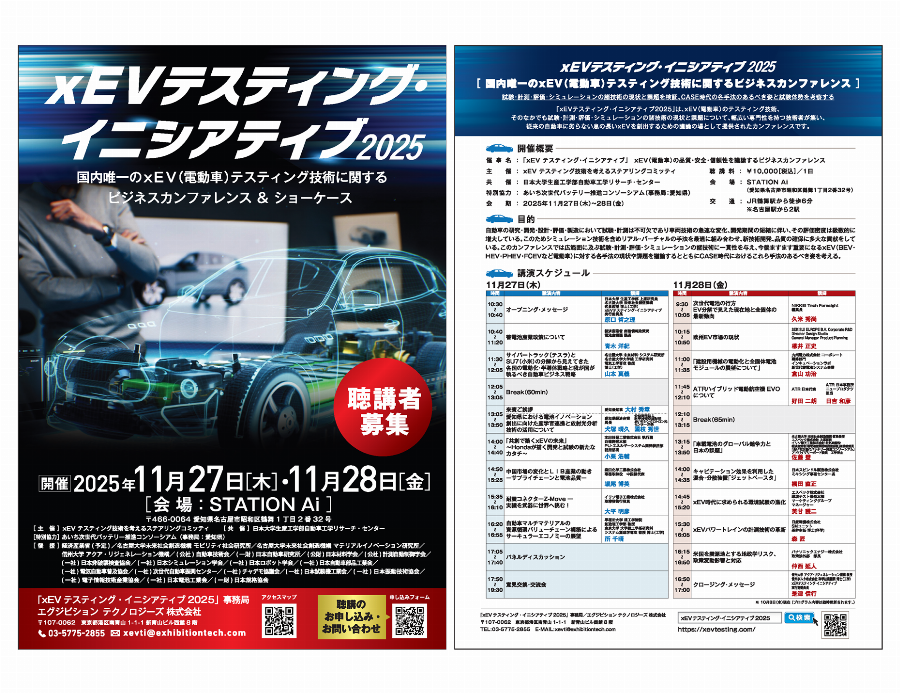 xEV(電動車)の品質・安全・信頼性を議論するビジネスカンファレンス「xEV テスティング・イニシアティブ 2025」 に、GREMOメンバーの山本真義 教授(先進ビークル研究部門)と、柳井正史 招へい教員が登壇します。