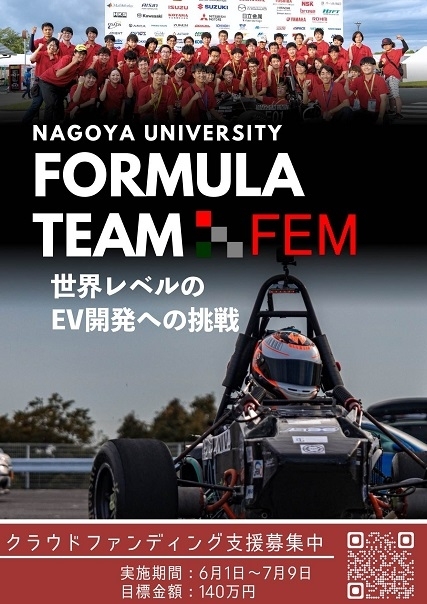 名古屋大学フォーミュラチームFEMが「世界レベルのEV開発への挑戦」を掲げて、クラウドファンディング支援募集中!(募集期間終了:成立!)