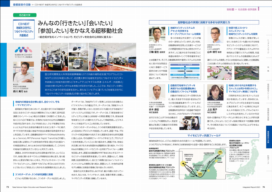 東海国立大学機構 統合報告書「INTEGRATED REPORT2023」に、COI-NEXT「地域を次世代につなぐマイモビリティ共創拠点」が紹介されました!